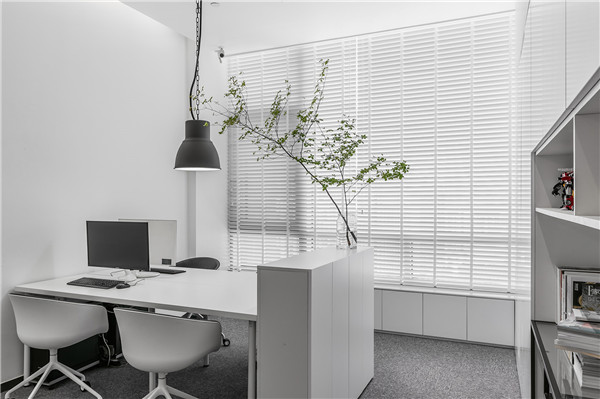 造型簡單,但是不失特點,整個辦公室裝修中不需要任何裝飾品,簡單的擺放桌椅就可以了,使用線條增加空間的整體藝術(shù)感,利用光和影制造出更多的視覺效果。